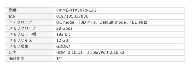 シー・エフ・デー販売株式会社(社長:三谷弘次、本社:愛知県名古屋市)が代理店を務めますASUSブランドの新製品として、NVIDIA GeForce RTX 5070グラフィックボードを発売いたします。