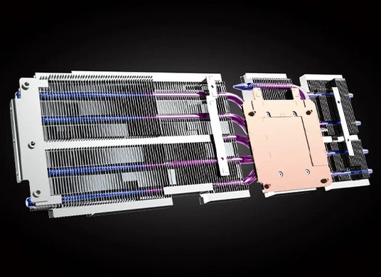 - 搭載されているヒートシンクは、銅ベースをGPUに直接接触させることで熱伝導効率を高めています。