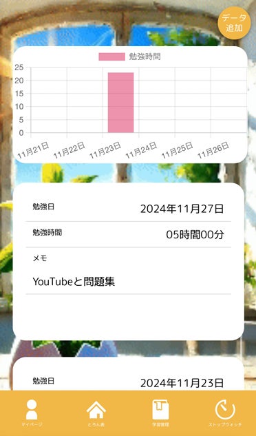【勉強記録ページ】都度入力して勉強を記録していただけます。