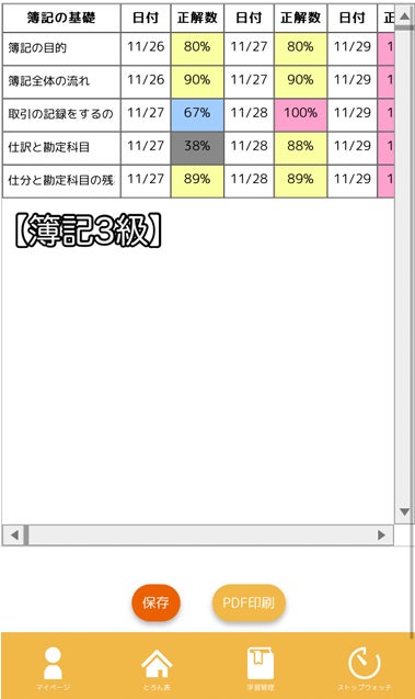実際の試験実績[模試・過去問]の記録を表にして 確認できるようにする
