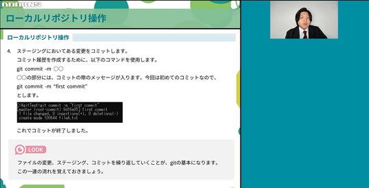基本的なコミットなどから、イメージをつかみながら一緒に操作してGitに慣れていくことができます。