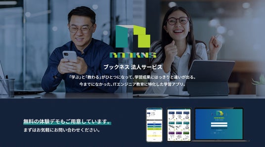 ベストセラー書籍を執筆している技術力をもとに、コーチングを一体化したeラーニングコンテンツBOOKNS(ブックネス)を提供し、従来の学習形態にとらわれずより多くの環境の方に教育コンテンツを提供しています。