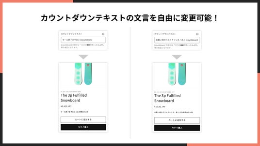 商品ごとにカウントダウンタイマーを表示して、コンバージョン率を上げましょう。