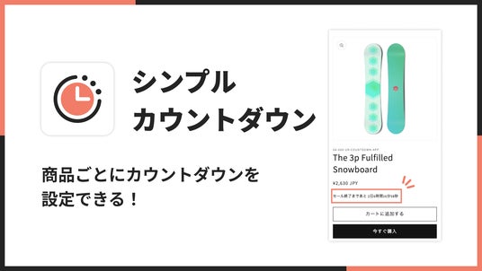Shopifyアプリである「シンプルカウントダウンタイマー|お手軽残り時間表示」を使うと、商品ごとにカウントダウンを設定できます。