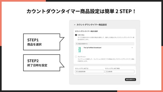 カウントダウンタイマー商品設定は簡単 2 STEP!