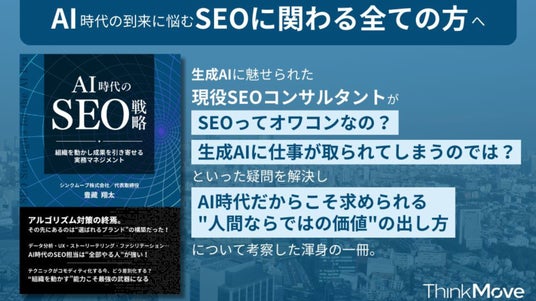 シンクムーブ株式会社は、「ファシリテーションを軸にSEOとAIを使いこなす会社」として2024年に創業しました。今回登壇した代表・豊藏の著書に「AI時代のSEO戦略――組織を動かし成果を引き寄せる実務マネジメント」があります。今回のセミナーでお話ししたことにも通じる内容になっておりますので、ご興味を持っていただけた方はぜひご一読ください。