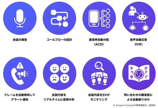 『HARMONY(ハーモニー)』は、Amazon Connectをベースに、生成AIを活用したコールセンターシステムです。通話内容のリアルタイム文字起こし機能や会話議事録生成機能などにより、オペレーターが本来の業務に集中できる環境を提供し、コールセンター業務の効率化、高品質化を実現します。