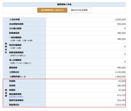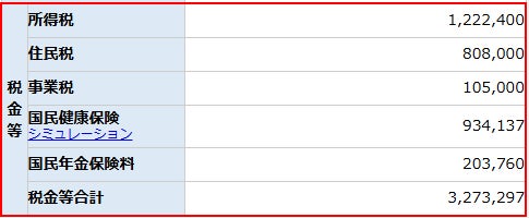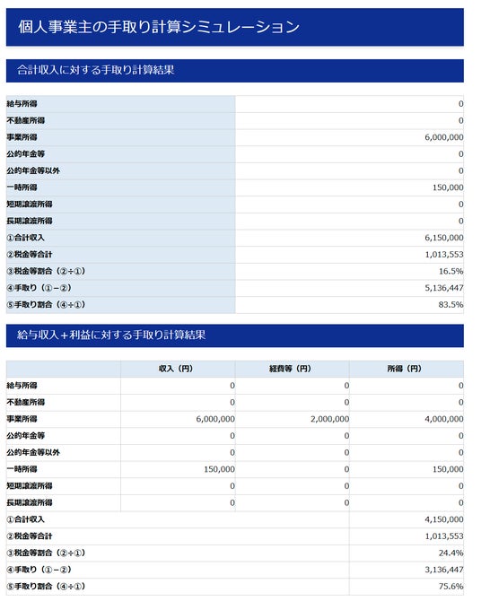 以下のとおり、税額や手取りなどのシュミレーション結果が表示されます。
