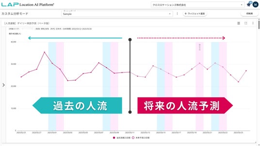 クロスロケーションズ株式会社(本社:東京都渋谷区、代表取締役:小尾 一介、以下「クロスロケーションズ」)は、人流分析プラットフォーム「Location AI Platform(R)(LAP)」において、新機能「[人流速報]デイリー来訪予測(ベータ版)」をリリースしました。