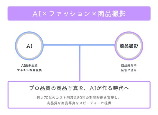 本AIモデルは、企業のクリエイティブ制作を革新し、迅速で高品質なビジュアルコンテンツの生成を可能にします。 これにより、モデルやタレントを起用したあらゆるビジネスの課題を解決し、これまでにない価値を創造します。