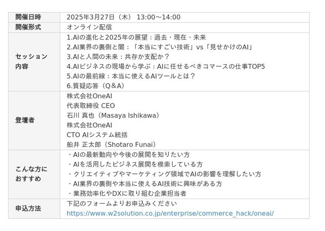 視聴予約URL:https://www.w2solution.co.jp/enterprise/commerce_hack/oneai/