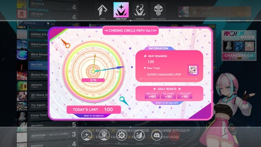 さらに、アーケード向けリズムゲーム 「CHRONO CIRCLE(クロノサークル)」 とのコラボレーションが正式版リリースと同時に開始!VIRTUAL PATHを進めることで、CHRONO CIRCLEの人気楽曲がプレイ可能になります。