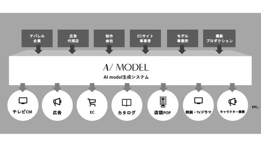 独自開発のAI技術で生成した各企業専属のファッションモデルやタレントです。AI model社は、TVCMや広告展開におけるマーケティング/ブランディングおよびプロモーションのクリエイティブ制作の最適化を支援するほか、ECサイトやカタログ、店頭におけるキービジュアル制作、撮影業務のリードタイム短縮、コスト削減、そして収益向上を実現するサービスを提供しています。