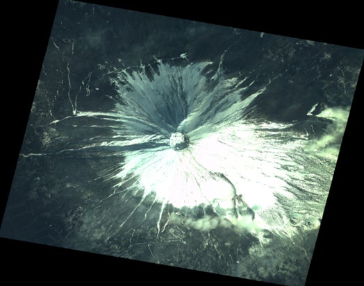 図1: 本実証にてASNARO-1により撮像された富士山の画像(撮影日2025年1月20日) Credit:(C)NEC Corporation, Distributed by PASCO CORPORATION
