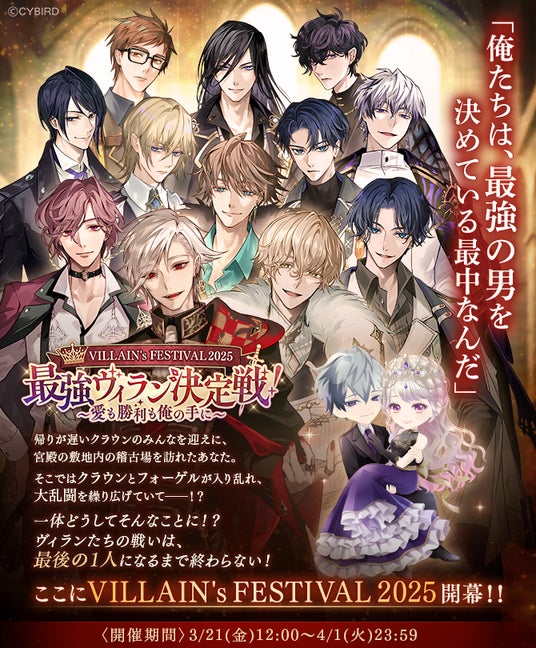 『イケメンヴィラン』で2回目の開催となる「VILLAIN's FESTIVAL 2025 最強ヴィラン決定戦!~愛も勝利も俺の手に~」を、2025年3月21日(金)より開催します。