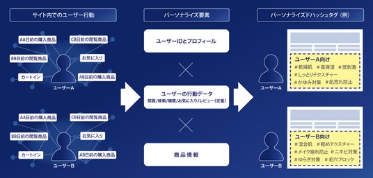 今回新たに追加したパーソナライズ機能により、ジーニーが提供するGENIEE CDP(Customer Data Platform)と連携し、各ユーザーの行動データに基づきカスタマイズされたハッシュタグの表示が可能になりました。これにより、ユーザー個別のニーズを反映した、より最適な検索体験を提供します。
