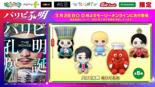 株式会社イオンファンタジー(本社:千葉県千葉市、代表取締役社長:藤原徳也、以下、当社)は、2025年4月25日(金)に公開の映画『パリピ孔明 THE MOVIE』の当社限定プライズゲーム用景品「パリピ孔明 ぬいぐるみ」を、当社が運営するアミューズメント施設「モーリーファンタジー」「PALO」にて2025年4月より展開予定です。「モーリーファンタジー」「PALO」での展開に先立ち、オンラインクレーンゲーム「モーリーオンライン」では、「パリピ孔明 ぬいぐるみ」のブースを3月28日(金)0時より先行展開いたします。(「パリピ孔明 ぬいぐるみ」のお客さまへの発送は2025年4月下旬頃の予定です。)