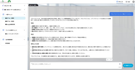 社内情報を検索対象に加えることで、必要な情報を迅速かつ正確に取得できるようになりました。また、ファイルのアップロード機能を活用することで、データを迅速かつ正確に分析し、データ処理の効率が向上しました。