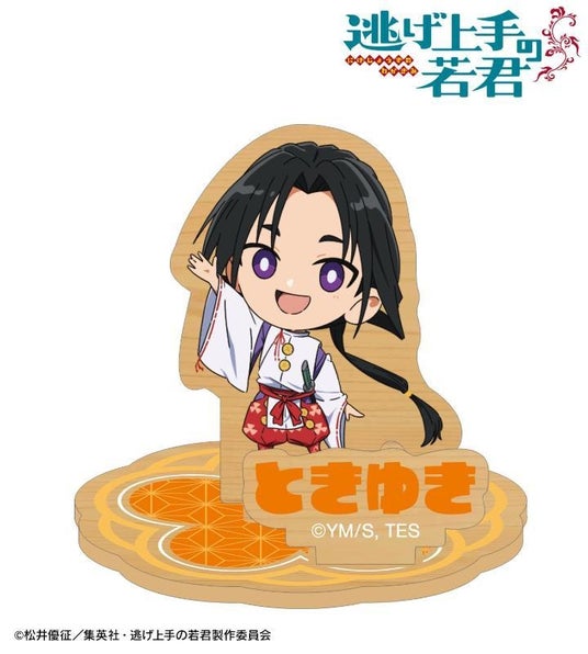 北条時行、雫、弧次郎、亜也子、風間玄蕃、吹雪、諏訪頼重の描き起こしちびキャライラストをメインにデザインし、パーツ付きのウッドスタンドに仕上げました。