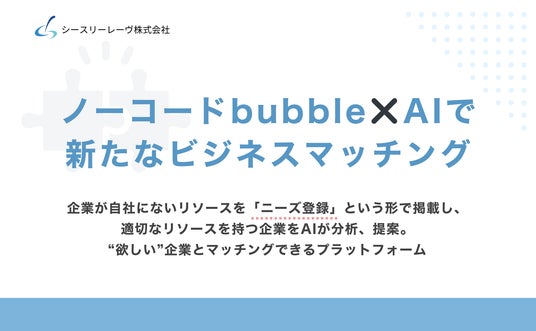 シースリーレーヴ株式会社(本社:東京都港区、代表取締役社長:空野正輝)は、企業間のリソース共有と協業を促進するマッチングプラットフォームをBubbleで開発いたしました。