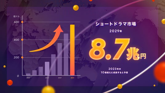 2023年夏にグローバルに広がったショートドラマ市場は、2024年以降も国内外を問わず大きく成長を続けています。2024年に発表された市場調査レポート(YHリサーチ調べ)によれば、2029年には8.7兆円規模まで拡大するとの予測が出ています。