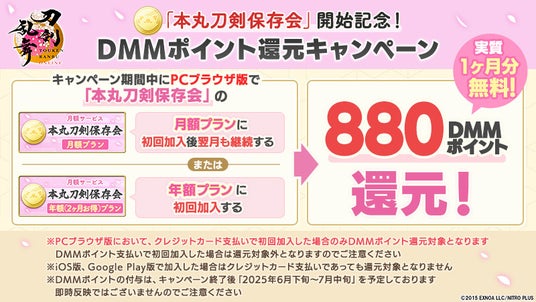 「本丸刀剣保存会」の実装を記念して、DMMポイント還元キャンペーンも開催いたします。