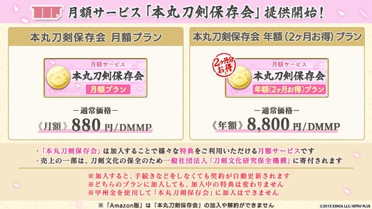 ■新たに月額サービス「本丸刀剣保存会」を開始!