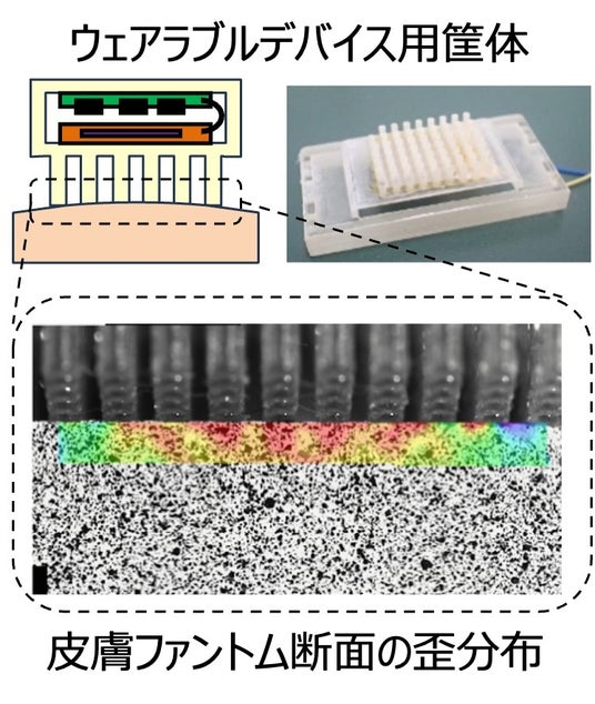 本評価システムでは、高速度カメラを用いた非接触式の測定法を採用しており、任意の振動波形について皮膚内を伝播する歪を可視化できる点が大きな特徴です。また、この評価技術を活用し、デバイスの貼付構造や皮膚と振動板の接触界面を最適化することで、振動知覚能を向上させられることを筑波大学との共同研究で実証しました。