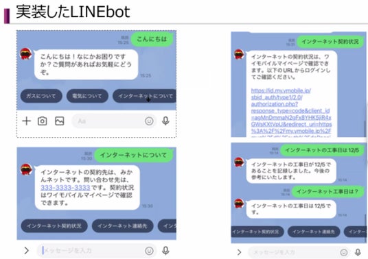 ライフライン管理アシスタント引っ越しをした際の電気・ガス・水道・物件の管理会社などの契約情報や問い合わせ先が分からなくなる問題を一元管理。家で利用したいとのことでLINEとmiiboを使った実装にチャレンジされていました。miiboのステート機能も活用し、利用者がデータを随時更新・追加できる仕組みを実装。
