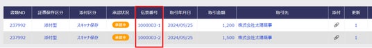 電子帳簿保存法オプションの「証憑検索」一覧表示例