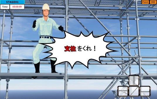足場組立作業ゲーム:シナリオモードプレイ画面