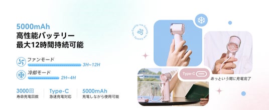 ・ 無段階風量調整が実現、4900mAhバッテリーで最大12時間稼働&急速充電対応