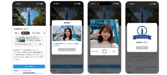 例えば「青い鉄塔を背景にピースサインをした写真」という条件設定など、指定条件の工夫だけで手間なくスタンプラリーのゲーム性を大幅にアップさせることができます。撮影した写真はその場で自動判定され、スタンプやポイントの取得の可否が即時確認可能です。