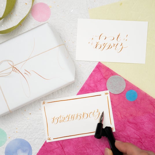 レイアウトや装飾の仕方も学ぶことができ、レッスンの中でカードを仕上げます。和モダンカリグラフィーが普段の生活の中で身近なものになります。