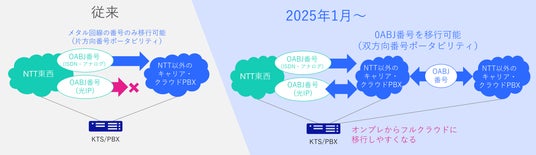 2025年から双方向番号ポータビリティ(注3)の受付が開始され、固定電話番号からIP番号への移行やその逆が容易となり、企業における主要なコミュニケーションツールである音声通話のインフラ再編が加速しています。特にクラウドPBXの課題であった外線番号の移行が緩和され、PBX構成がオンプレミスからフルクラウドに移行しやすくなり、クラウドPBX市場の活性化が予想されています。