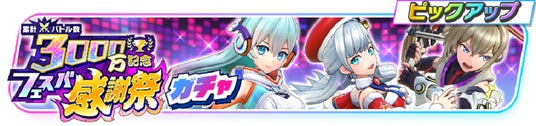 『フェスバ+』の累計バトル数が3000万回を突破したことを記念し、報酬が盛りだくさんコンテンツをご用意しております。