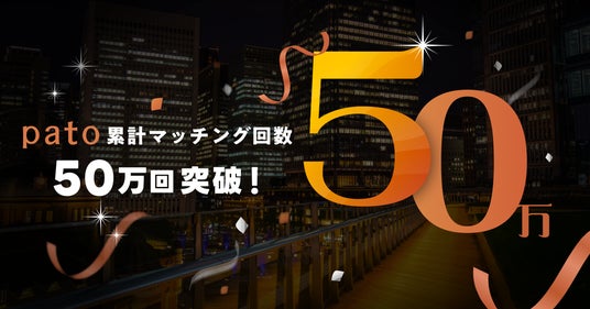 2017年6月よりエンタメマッチングアプリとしてサービスを開始したpatoは、最短30分で登録キャストと合流できる「patoコール」をはじめ、多種多様なスキルを持つキャストと個別にメッセージを行い、合流ができる「コパト」機能といったメイン機能をご愛顧いただき累計のマッチング回数が50万回を突破いたしました。