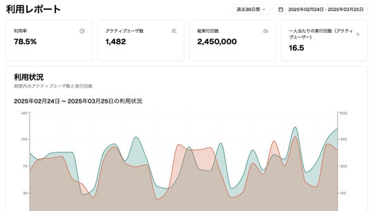 ・企業内での利用実績を可視化。情報漏洩リスクの低減やコンプライアンス強化をサポートします。