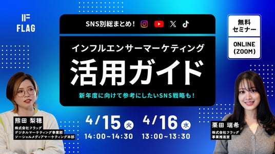 新年度を迎えるこのタイミングで、SNSごとのインフルエンサーマーケティングの活用方法をまとめて把握いただける機会をご用意いたしました。本セミナーでは、Instagram、YouTube、X、TikTokの4プラットフォームごとに、インフルエンサーの活用にあたって大事にしたいポイントを解説。具体的な成功事例もご紹介するとともに、AIを活用したインフルエンサーマーケティングソリューション「featuring(フィーチャリング)」についてもご案内いたします。