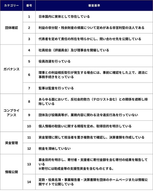 すべての基準を満たした団体に認証(グッドギビングマーク)を付与