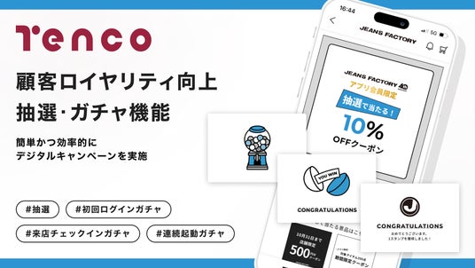 OMO戦略の強化を目的に、「JEANS FACTORY公式アプリ」に抽選機能とガチャ機能を導入しました。それぞれの機能を活用することで、顧客ロイヤルティの向上やサービスの利便性向上を目指しています。