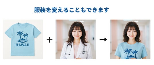 モデルの服装を変えることもできます。会社やお店の制服を着せるなどの活用が可能です。また、ファッション業界における新たな可能性をご提案いたします。