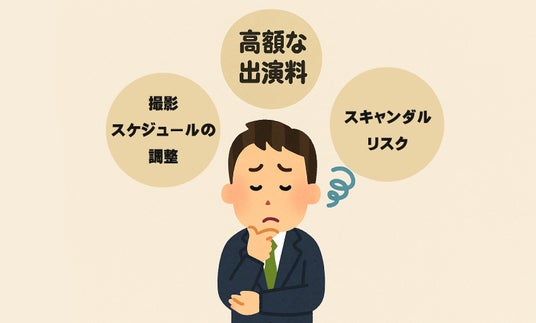 マーケティングにおいて「人物」が登場する広告の方が、そうでない広告よりも、消費者にとって親近感が生まれ、信頼性も向上すると言われています。テレビCMや広告では、有名タレントを起用することでファン層へのアプローチが可能ですが、その一方で、高額な出演料や、撮影スケジュールの調整、スキャンダルリスクなどの負担が生じます。