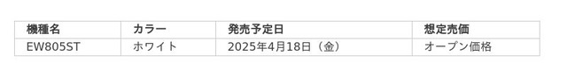 「EW805ST」製品仕様表