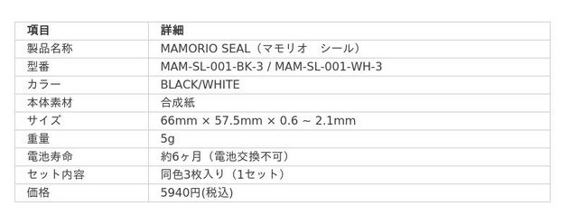 MAMORIO SEALは、公式ストアで2025年4月15日よりブラック・ホワイト各3枚1セット5940円(税込)で公式ストア・各ECサイトにて発売を開始いたします。ヨドバシカメラ、ビックカメラなどの各種小売店では随時販売開始予定です。