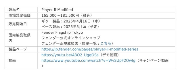 フェンダー ミュージカル インストゥルメンツ コーポレーション(所在地:米国カリフォルニア州、CEO:アンディ・ムーニー、以下FMIC)は、「Player IIシリーズ」を拡張する新モデル『Player II Modified』を発表しました。エレクトリックギターとベースに、演奏性と表現力を高めるこだわりのモディファイ(改造)を施した本シリーズは、現代のプレイヤーに向けて、より洗練されたトーン、操作性、そしてスタイルを提供します。本シリーズは、ギター製品が2025年4月16日(水)より、ベース製品は5月以降順次発売開始となります。