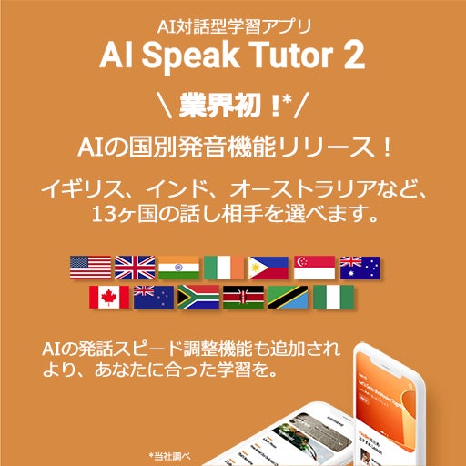 「AI Speak Tutor 2」は、AIとの対話を通じて英会話学習を行うことのできるアプリです。AIが利用者の回答を評価・分析し、利用者がうまく回答できない場合はヒントを提示して会話がつながるように誘導するなど、実際に人と話をしている感覚で実践的に英会話のスキルを習得できます。