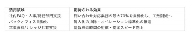 さらに日本企業内においてAI活用を活用させていくためには、バックオフィスや営業支援、ナレッジ検索などの自社データを取り使いながらのAI活用が必要不可欠です。