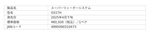 フォスター電機株式会社(フォステクス カンパニー プレジデント:田中英行/東京都昭島市/以下フォステクスカンパニー)は、「GS17H」 を4月下旬より出荷いたします。