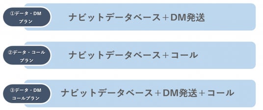 ナビットデータベースにDM発送・アウトバウンドコールサービスを組み合わせたプランとなります。